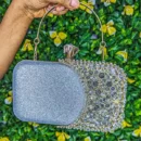 Ajoutez une touche de luxe à votre tenue avec ce sac argenté pailleté avec strass dorés, parfait pour les soirées, mariages et événements élégants. Sa finition noire scintillante et ses strass brillants apportent un éclat raffiné à votre look. Doté d’un fermoir bijou en forme de diamant et d’une anse dorée rigide, ce sac à main chic combine style et praticité. Compact mais suffisamment spacieux pour l’essentiel, il deviendra vite votre accessoire préféré.